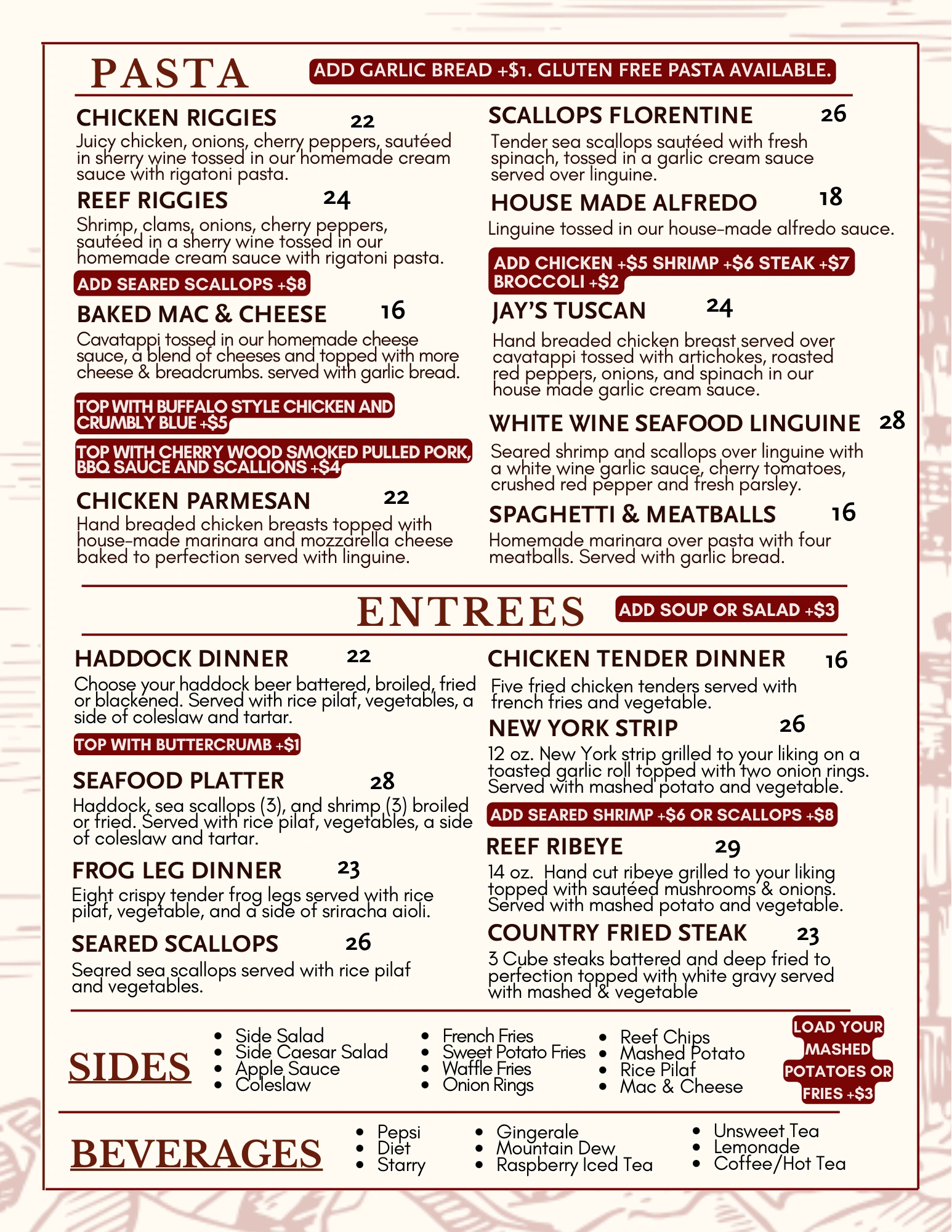 OPEN FOR LUNCH & DINNER. BAR & CASUAL DINING AT THE OLD JACK’S REEF HOTEL